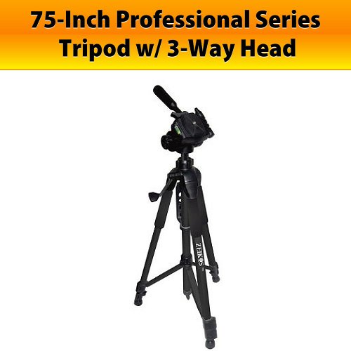 Buy 75-Inch Professional Series Tripod w/ 3-Way Head + Extra Durable Professional Large Leather Like Carrying Case For The Sony HVR-HD1000U, DCR-TRV900, VX2100, DSR-PD150, PD170 Mini Dv Camcorders Now