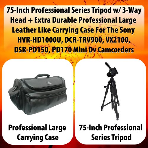 Buy 75-Inch Professional Series Tripod w/ 3-Way Head + Extra Durable Professional Large Leather Like Carrying Case For The Sony HVR-HD1000U, DCR-TRV900, VX2100, DSR-PD150, PD170 Mini Dv Camcorders |