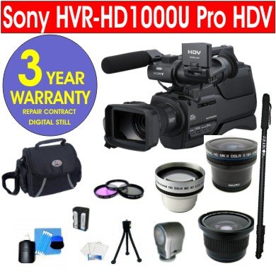 Buy Sony HVR-HD1000U Professional Digital HDV Camcorder + 3.5X Telephoto Zoom Lens + .40X Fisheye Lens + .16X Super Fisheye Lens + Premier Video Light + 3 Piece Multi-Coated Glass Filter Kit + Extra High Capacity Li-Ion Battery + Deluxe Padded Camcorder Bag + 72" Titanium Anodized Monopod + 3 Year Warranty Repair Contract Now